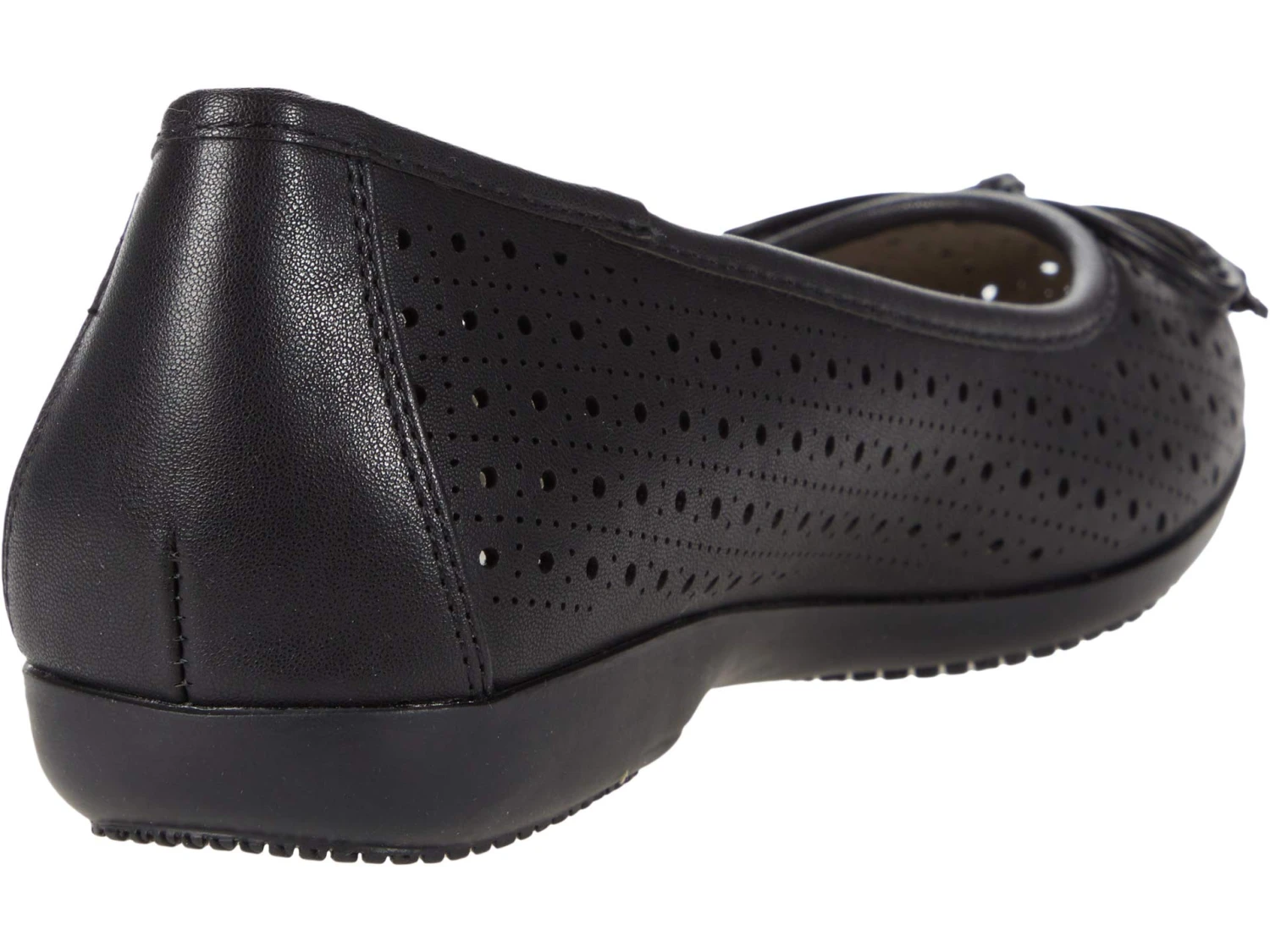 - Heel is textured for extra traction and support. Perforated all over design. Featuring a round toe.
