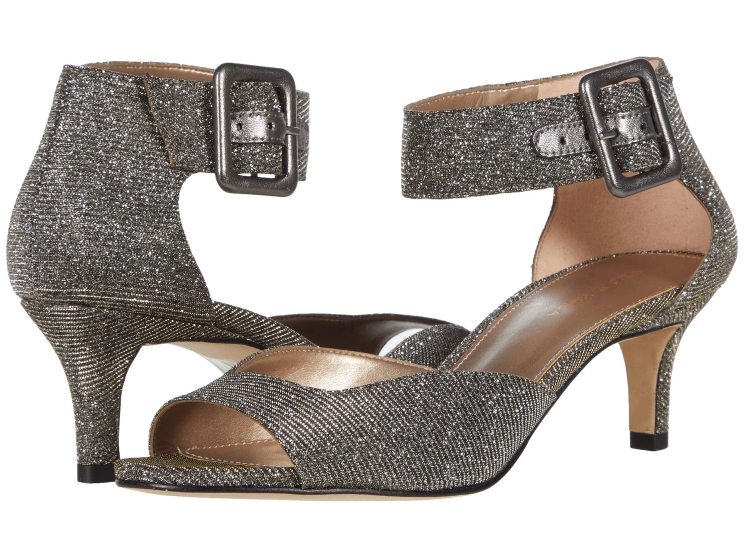 - Ankle strap with buckle closure.