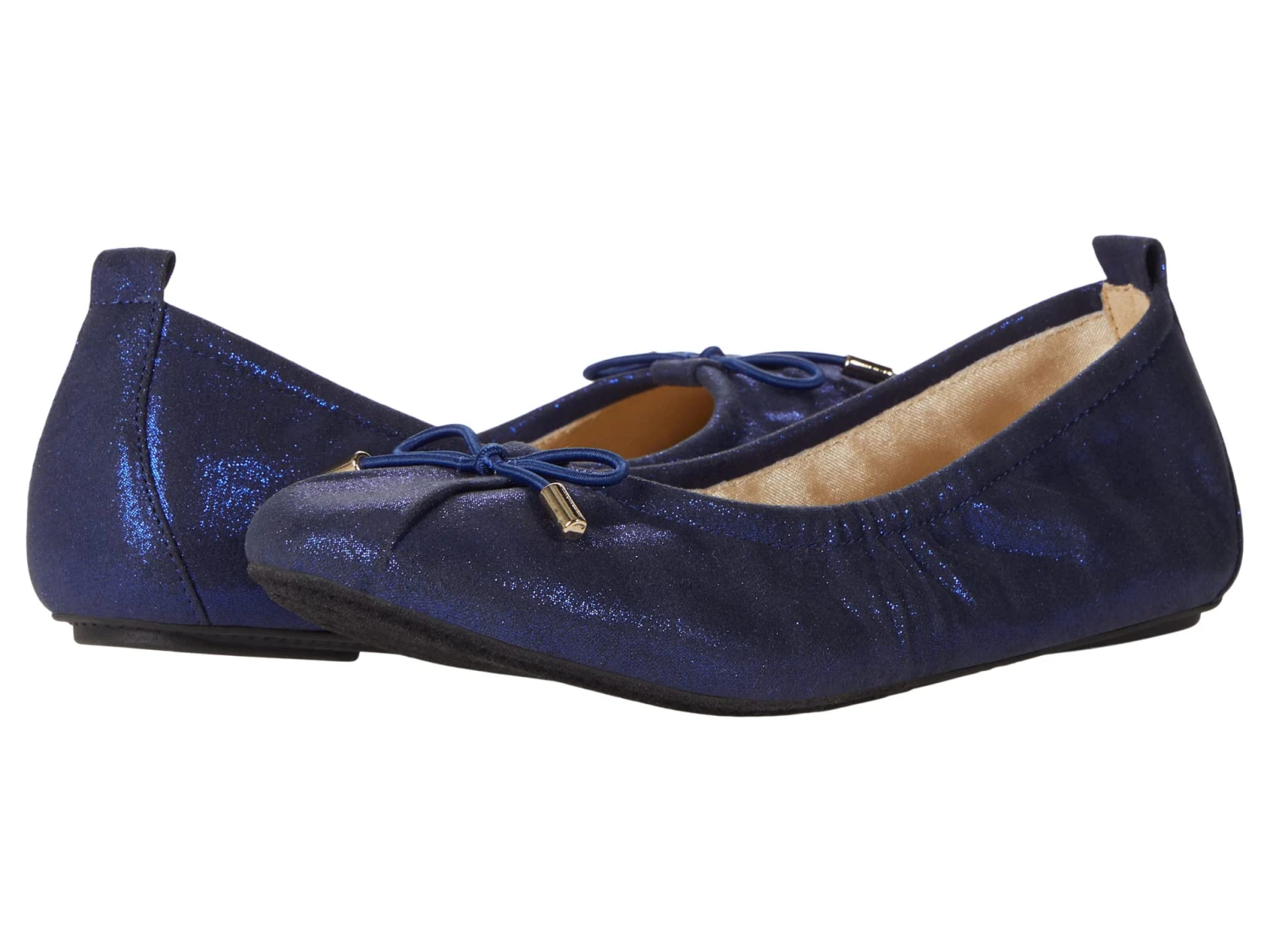 - Shimmery textile upper.